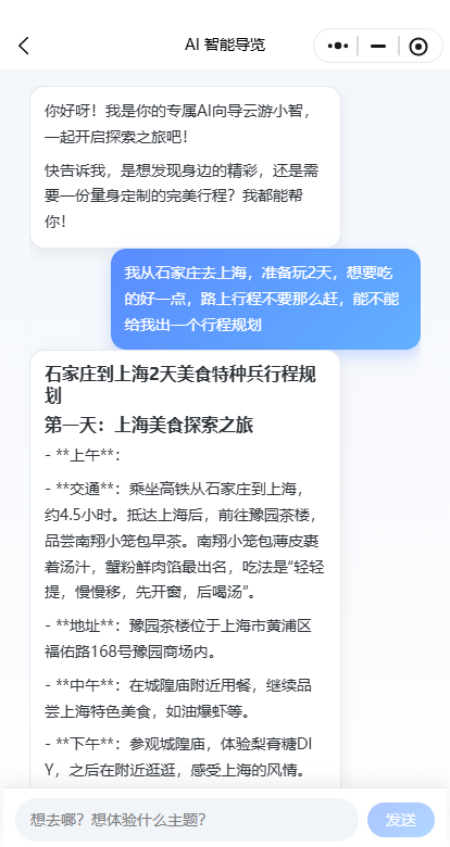 核心亮点:针对大学生 “轻规划、爱个性” 的特点,提供专属路线定制(如小众景点串联、美食 + 打卡点组合路线),帮用户快速搞定行程,避免做攻略的繁琐。